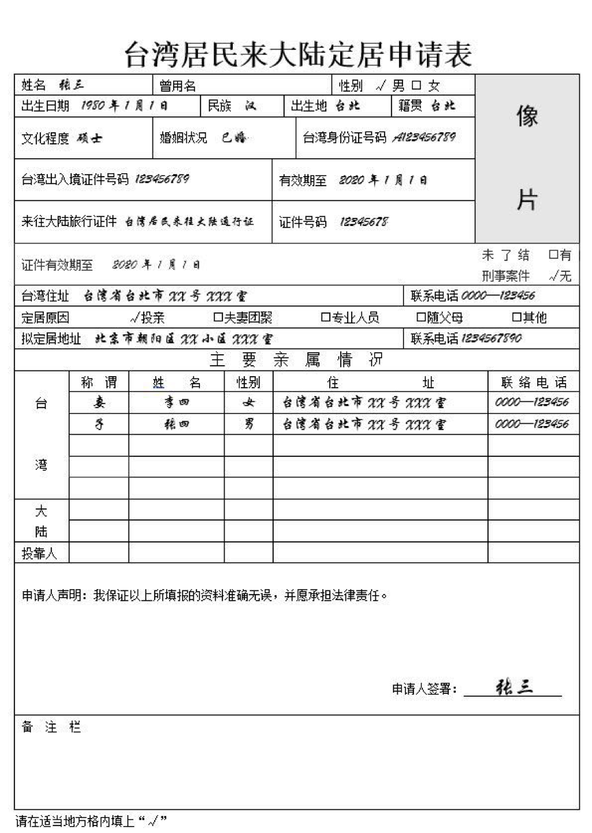 3、申请人须在《批准定居通知书》有效期内办理《台湾居民定居证》,并到定居地户口登记机关办理常住户口登记手续;